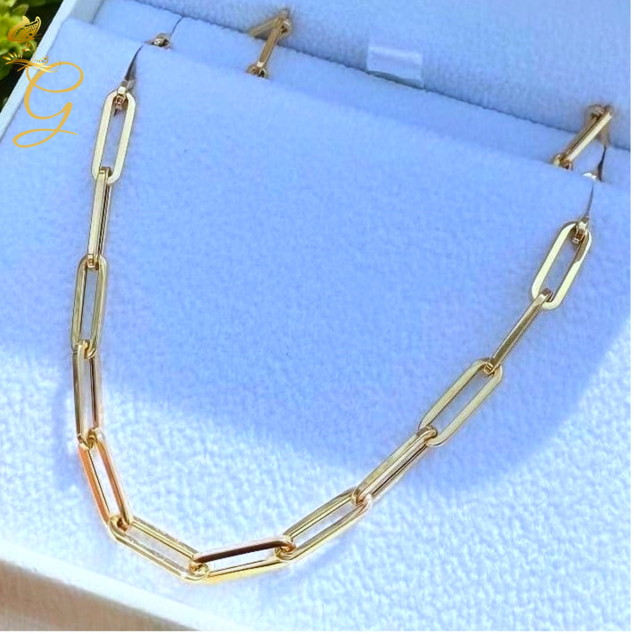 Add a touch of elegance to your outfit with our 18K Real Gold Paper Necklace. The 16 inch chain is made from high quality paper clip design, giving a luxurious and unique touch to your look. Crafted with expertise and precision, this necklace is a must-have for any fashion-forward individual.